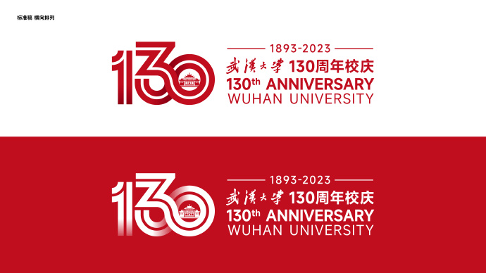 校庆标识以「130」、「1893-2023」、双「1」、无限符号「∞」、同心圆、武大?;毡晔兜仍刈槌?。数字「130」表达了130周年校庆;双「1」寓意「双一流」建设;