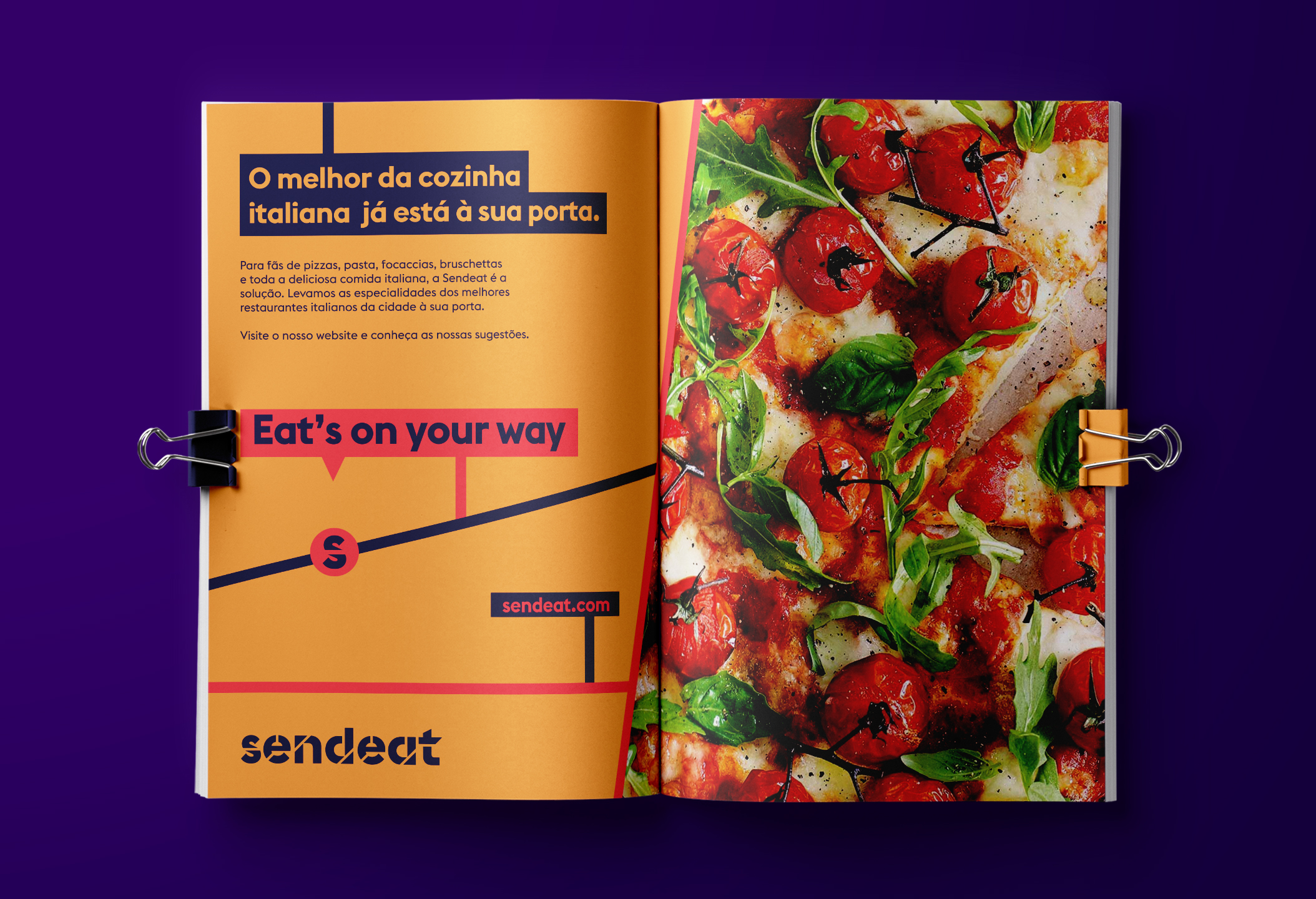感觉,并迎合不同的口味和选择。我们还决定创建一个k品牌广告语,以使用一个常用短语来最好地表达SendEAT的品牌承诺,并使之适应公司的主要服务现实:“随您吃”。结果就是简单而充满活力的餐饮品牌VI形象设计,具有现代的外观和清晰的信息:我们希望将最好的食物提供给最好的客户-我们的客户。我们从订单经过的城市地图上获得了灵感。我们决定对单词的小写字母进行模版处理,就好像它们被命令所经过的街道所打断以达到他们的命运一样。就像公司的服务一样,使用了大胆的颜色,以给人以变化和活力的感觉,并迎合不同的口味和选择。