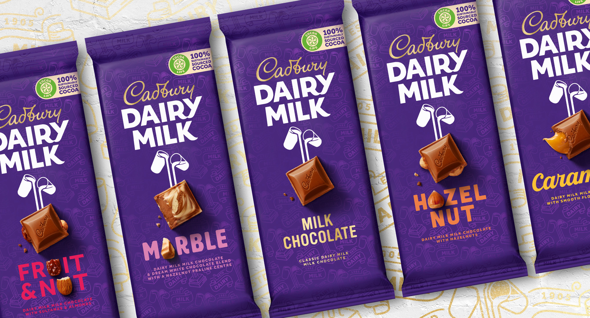 新标志设计也更加真实约翰·吉百利的签名就像它最初出现在品牌中一样,它的特点是在“b”中有一个美味的循环,而在“y”中则稍微有点夸张。
