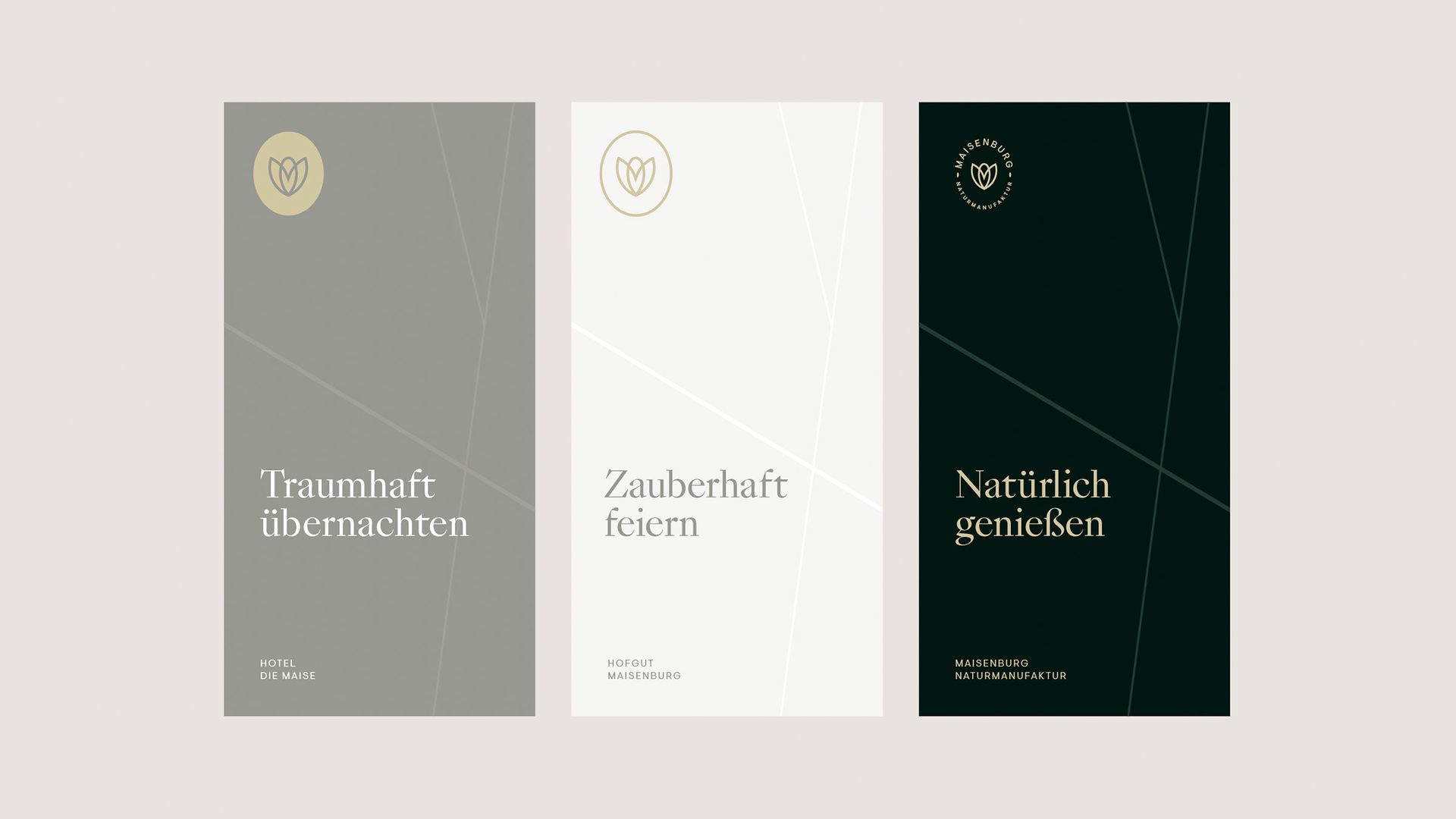 一个新品牌VI形象设计的庆祝时刻——这直接适用于所有 3 个 Maisenburg 品牌。新标志设计:将 Maisenburg 的 3 个世界结合在一起的风格山雀:Hofgut、制造厂和酒店?;ǖ男巫唇岷狭俗匀缓妥系某『稀S≌陆岷狭舜秤胂执?。 通过企业色彩,我们支持具有自然魅力的氛围,并使用新婚夫妇的经典色彩世界。作为附加的设计元素,参考玉米和山雀的自然环境使用了图案。