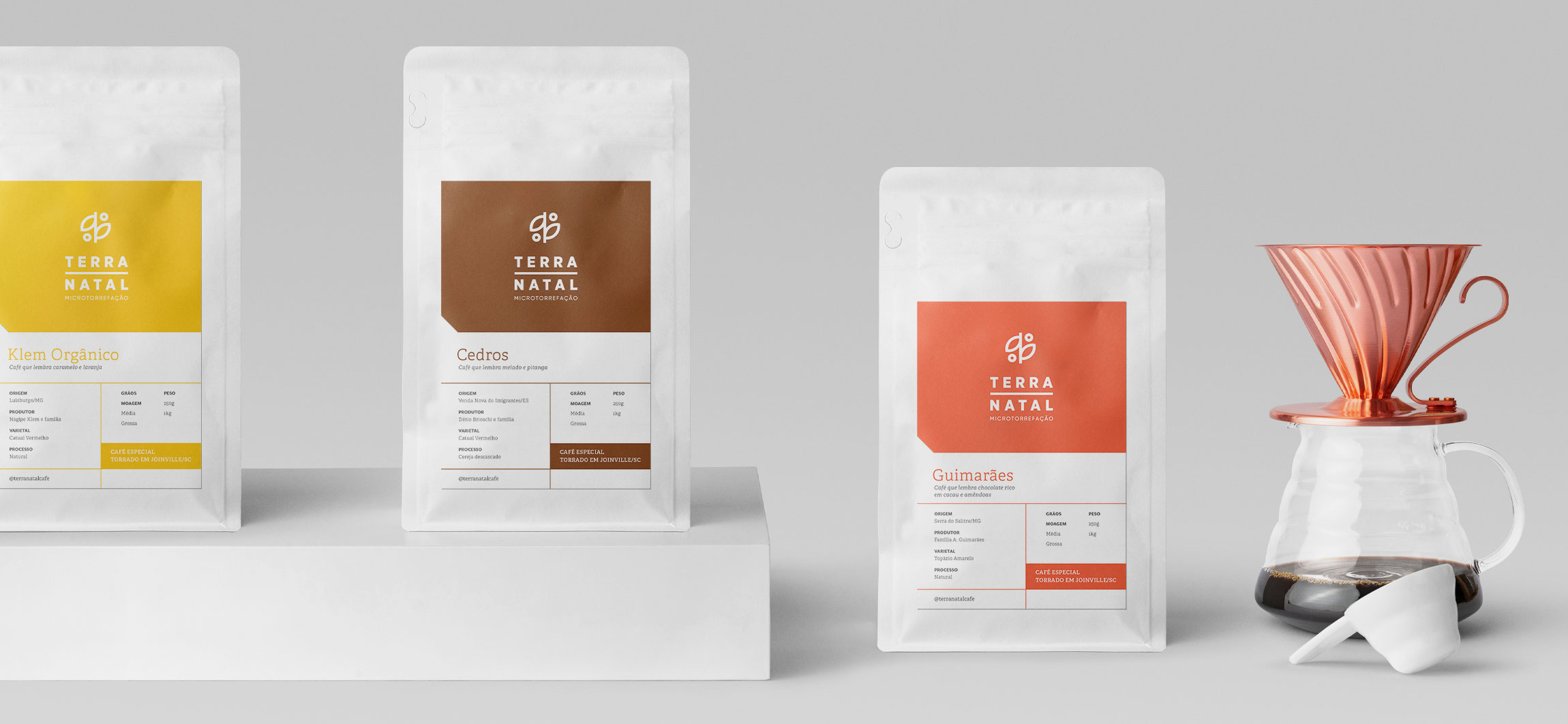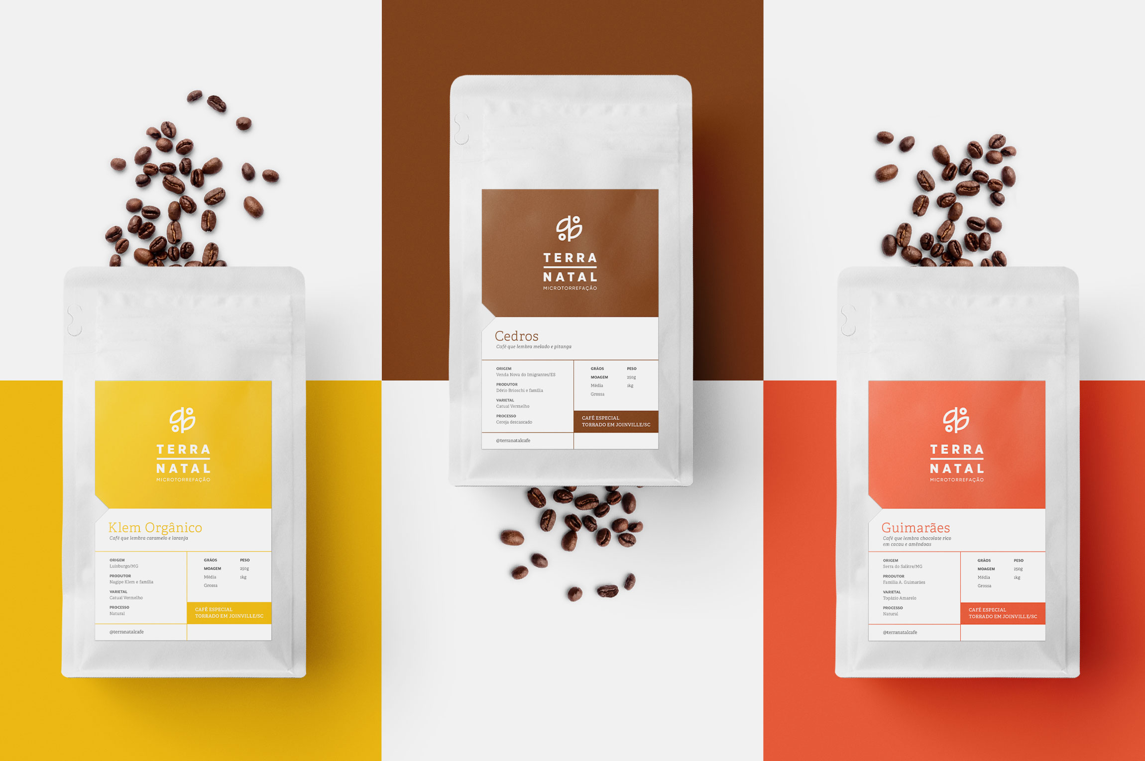 Terra Natal Coffee Roasters 特殊咖啡的包装设计项目专注于对品牌产生更直接的视觉识别,对产品线进行分类,向消费者传达感官特征并优化生产流程。