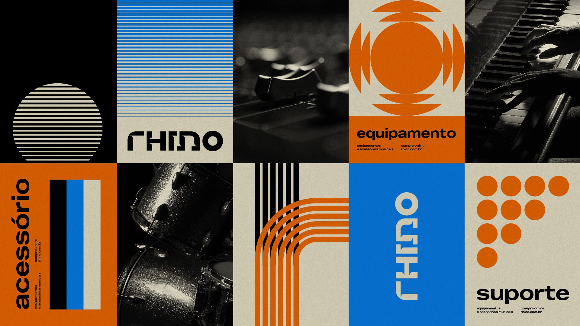 品牌形象设计来自音量的经典图形表示(粗线和细线,渐进),以及连续线和椭圆(指弦乐器),这些元素构成了Rhino的外观,融合了现代和当代美学,拯救了过去几十年音乐相关产品包装的部分外观。标识设计元素的部分阐述还试图传达“联系”和“适合”的理念,这也是Rhino产品的基本属性。另一个细节是,一些线条构成了品牌名称的首字母“r”。最终结果是一个永恒的标志设计,它将音乐世界与品牌产品的耐用性和稳健性结合在一起。