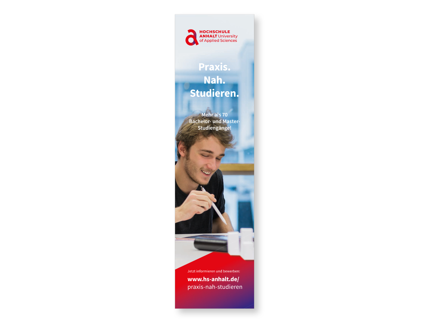 小写字母“a”仍然是学院的核心识别标志设计??孔畔@白帜副淼牡谝桓鲎帜窤lpha,这个新的小“a”象征着开头,所以这个想法?!按影补卮笱Э嫉闹耙瞪牡目?。创新性的研究,起源于大学。大学给人生道路带来的第一个动力”,在新闻报道中这样说。此外,在数学、物理、化学或生物学等各种科学学科中,甚至在经济学、建筑、计算机科学或设计中,数字符号Alpha也同样存在。对安哈尔特大学来说,新的“a”标志着一切联系在一起:学院的专业部门、其在伯尔尼堡、科隆和德绍的三个校园所在地,以及“主要是在这里学习、工作和度过人生重要部分的人”。