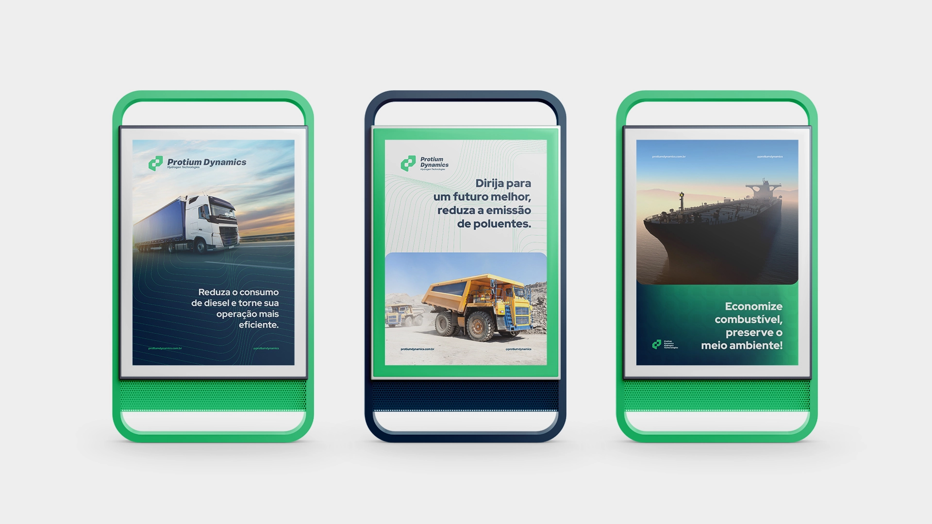 Protium Dynamics选择的半音和弦主要由绿色组成,象征着自然,希望和健康。蓝色是公司的主要颜色,代表氢气,具有纯净、和谐和平衡。浅灰色代表精致和智慧,以及空气。这些颜色选择经过深思熟虑,以传达公司对环境和技术承诺的信息。更新,更现代和长久的视觉识别与LOGO设计,该公司将引领运输行业的转型,更环保与高效率,并帮助创造更可持续和更高效的未来。