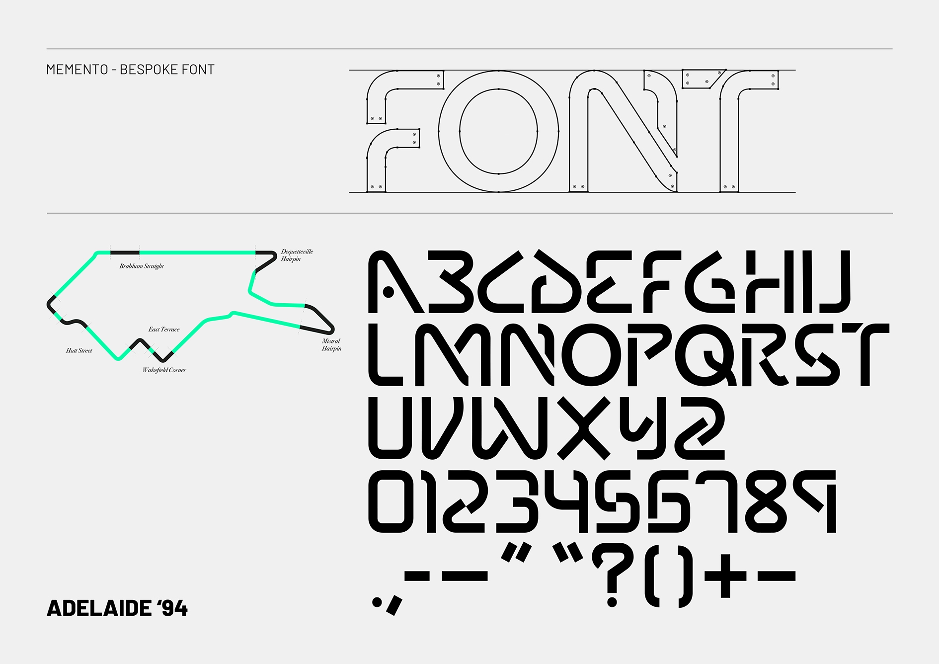 采用了标志性的赛道及其著名的弯道和直道,为Memento创造了一个定制的字母组合和字体,它提供了一种运动和动作感,而不是将自己与F1单独联系在一起,而是具有运动本身提供的精度和工艺水平。字体中的每个字母和字符都从阿德莱德轨道上剪下来,重新用作反映品牌所做的事情的字体结构,精确定位和重新定位以制作品牌的每个元素。