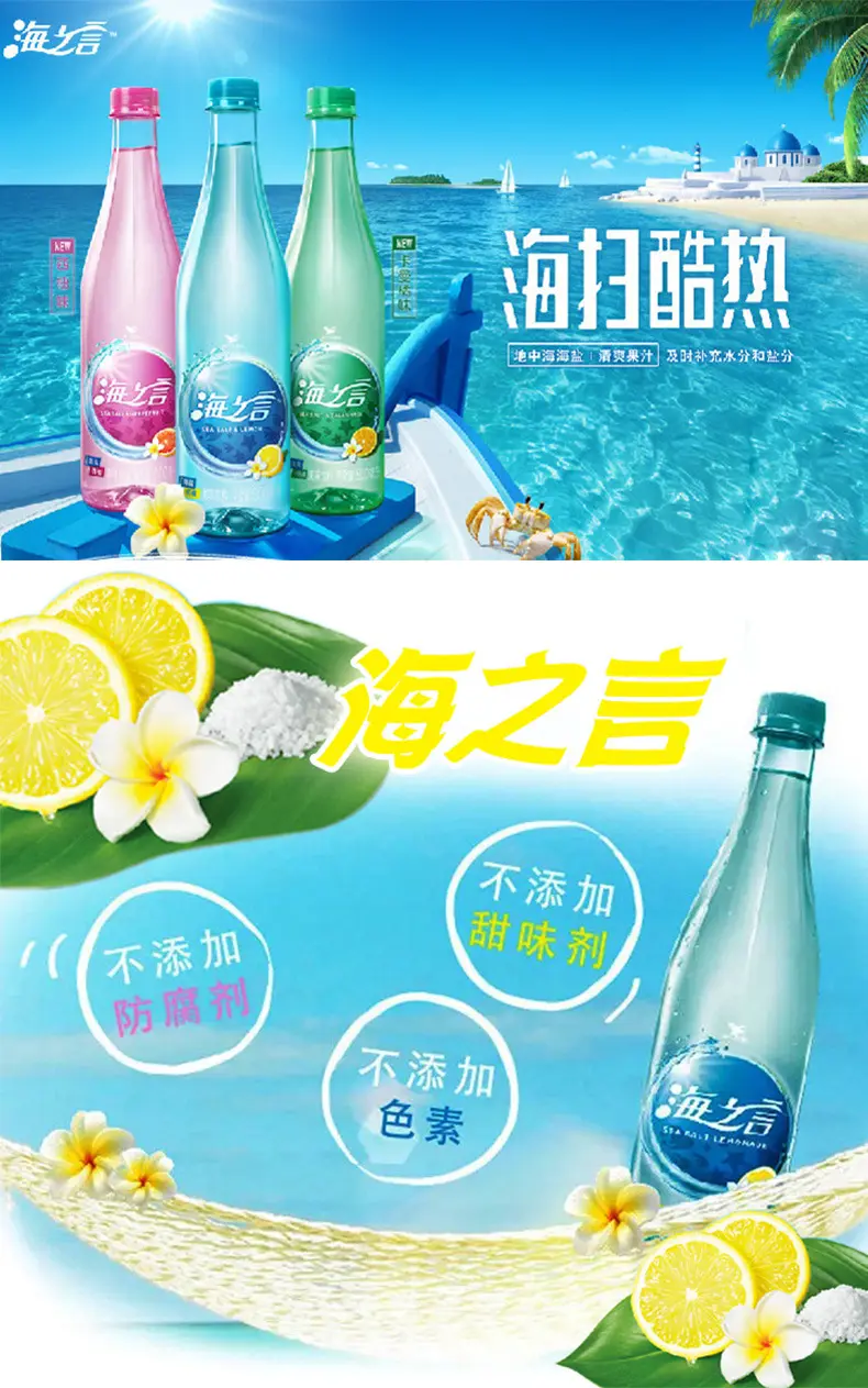 海之言源自地中海传统智慧,精选纯净,含矿物质的地中海海盐和果汁的完美融合。清爽的口感以及盐分补充的特点受到了年轻消费者及爱好运动人士的喜爱。