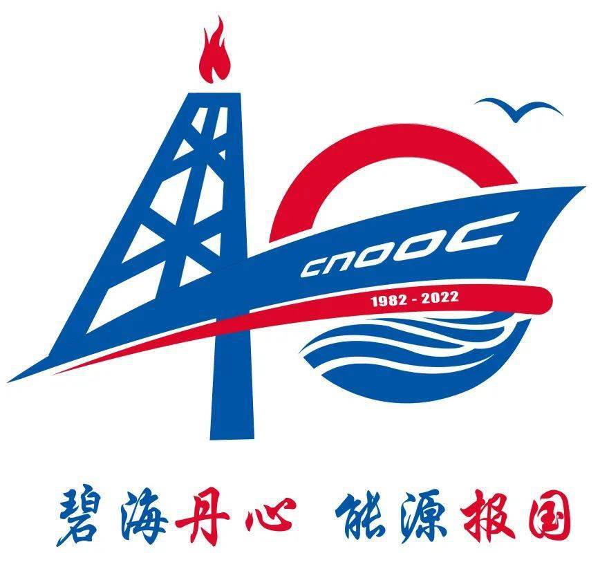 蓝色外圈和波纹象征中国海洋,英文大写字母CNOOC组成的红色图案有海上钻井平台托举一轮朝阳的意象,寓意中国海洋石油事业欣欣向荣